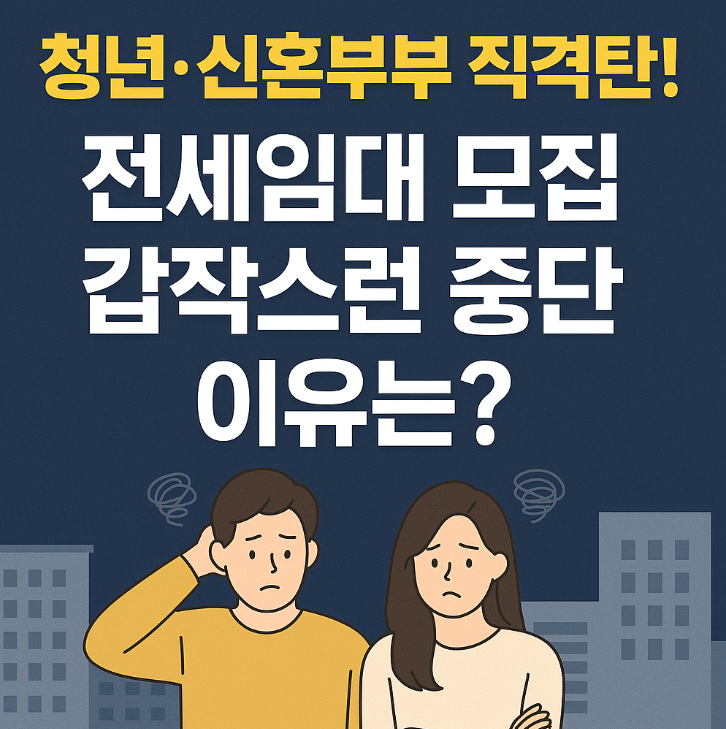 전국 공공 전세임대주택 모집 전면 중단 사태는 주거 취약계층에게 큰 충격입니다. 단순한 “모집 일시 중단”이 아니라, 정부의 공공주택 공급 정책 체감성이 얼마나 떨어지는지 보여주는 사건이기도 하고요.